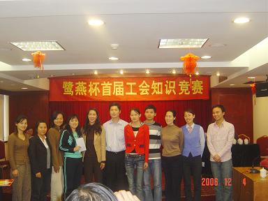 廈門鷺燕大藥房有限公司于2006年12月3日在廈門廬山大酒樓隆重舉行鷺燕杯首屆工會知識競賽,此次工會知識競賽由6個工會小組各自選派4名選手參加,比賽環節包括團隊介紹、啦啦隊互動、演講比賽、必答題、搶答題、猜詞秀、才藝表演等,形式多樣、內容豐富。比賽現場還邀請了一些供應商的代表作為嘉賓評委,為比賽進行現場點評及頒獎。
